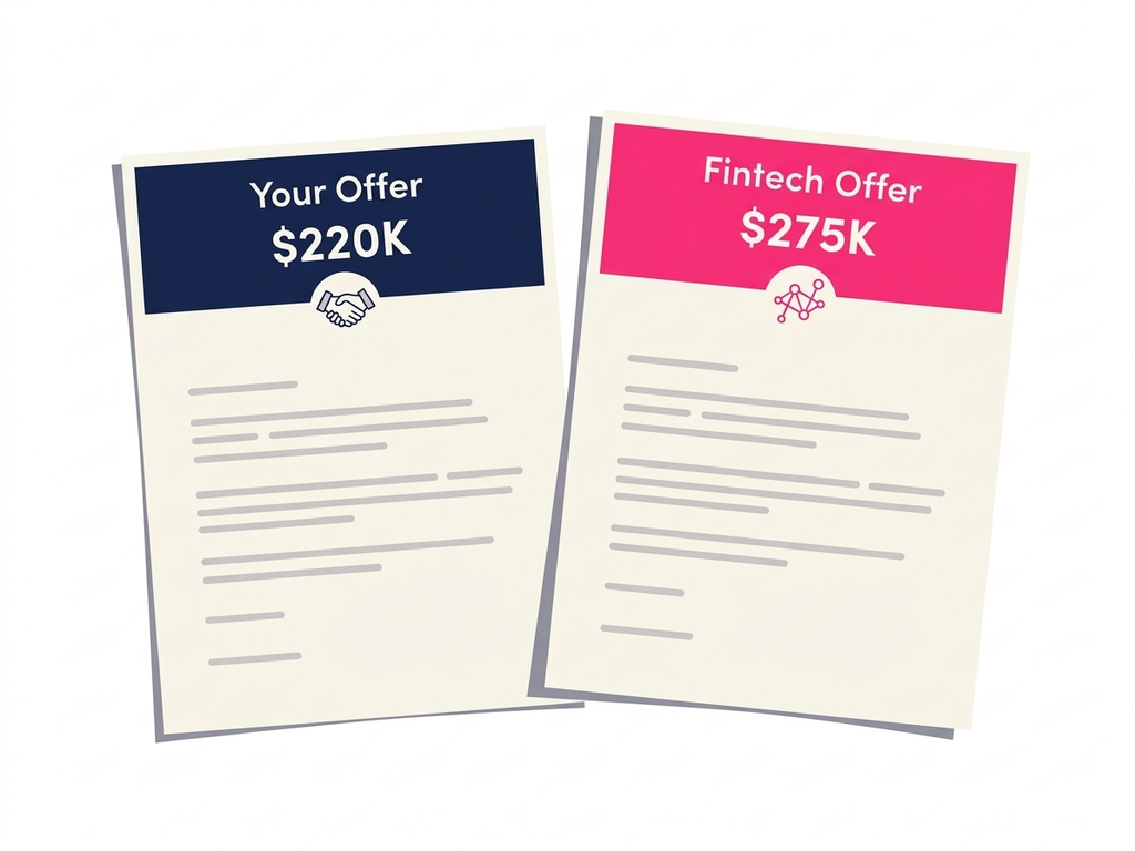 تستهدف شركات fintech المؤسسات المالية التقليدية باستراتيجية تركز على نقاط ضعف محددة: فرصة زيادة قيمة الأسهم، ومرونة العمل، وسرعة الترقّي، والسرد القائل بأن المؤسسات التقليدية بطيئة. تُظهر البيانات أنهم على حق بشأن سرعة الترقّي. متوسط المدة للوصول إلى منصب نائب الرئيس في بنك رائد يصل إلى 8-12 سنة. في شركة fintech في مرحلة نمو، تصل إلى 3-5 سنوات. لا يمكنك تغيير جدول الترقّي بين ليلة وضحاها، لكن يمكنك تحديد أي أصحاب الأداء العالي هم الأكثر عرضة لذلك العرض.